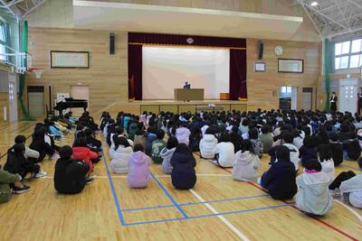普段から大切にしている教室からの無言移動。式での話を聞く態度。そして、式が終わってからの無言移動。今日までの成長を感じる式となりました。