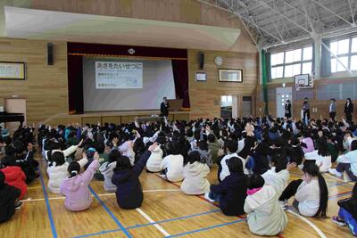 岩手日報さんが企画した取り組みに、本校では昨年から取り組み、子ども達の質問に多くの現役メジャーリーガーが回答しています。この企画の発案者でMLBで働いている岩手県出身の方と岩手日報さんの担当者が来校。メジャーリーガーの直筆の回答カードをいただきました。MLBの方からは、ワールドシリーズのチャンピオンリングのレプリカをお借りしています。見前小の子供達、先生達にぜひ見て、触れてほしいとのことでした。今日は、先生方でみたので、今後は学級毎にまわします。WBCには本校卒業生の菊池雄星選手が日本代表選出。ミラノ・コルティナ五輪には、盛岡市出身の吉田雪乃選手がスピードスケート日本代表内定(校長が指導している小学生陸上クラブの卒業生です。)