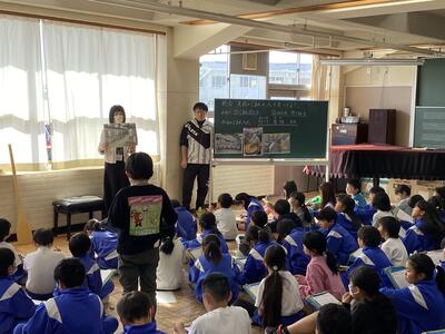 日脇さんは、11月から毎週月曜を基本に、学校支援ボランティアのICT支援員として。また、奥さんの春香さんも児童支援等様々な支援をしています。定期的な学校支援ボランティアの趣旨に賛同され、木曜に来ていただいている方もいます。一階第二図書室を活用し、地域に開かれた学校として協力を頂いています。