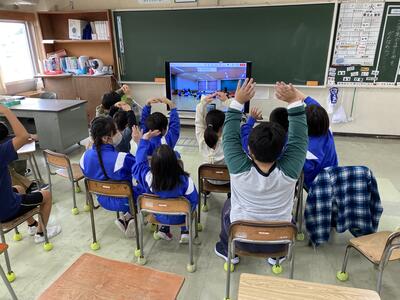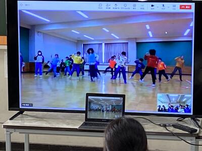 なかよし学級のみんなが、津志田小学校の特別支援学級の皆さんとリモートで交流会をしました。金曜日の市特研合同学習発表会で発表するダンスを力いっぱい表現してくれました。リズムにのりながら声援をおくりました。