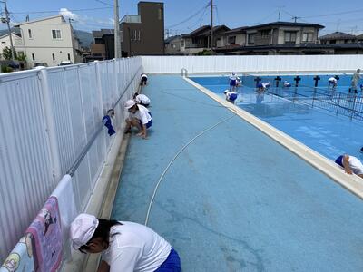 6年生が力を合わせ、一生懸命プール清掃をしました。磨くだけきれいになるので、より楽しく取り組むことができました。力をあわせ頑張ってくれた6年生に感謝です。