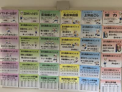 本校では、ただ測るのでなく、目標を設定し、『あと1回、あと1センチ、あと0.1秒頑張る』粘り強さを育てることを目標としています。こんな時こそ、ペップトークです。みんなで応援し、助け合いながら取り組みます。投運動や長座体前屈等経験不足の子が多いです。学校でも様々な運動を工夫して教えていますが、ぜひ家庭でも挑戦してほしいです。シャトルランは、学年の実態に応じ、秋に学年スポーツ大会を実施し、伸びを確かめる予定です。