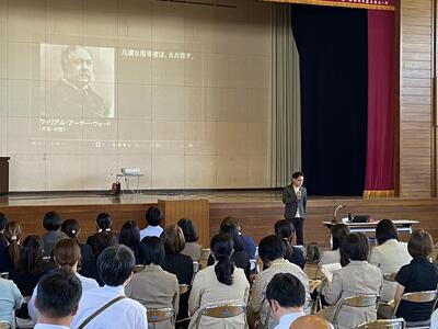今日は、ペップトーク普及協会理事の堀寿次先生を埼玉県から講師としてお招きし、『ペップトーク〜やる気を引き出すことばの力〜』について学びました。最後は思わず涙するお話でした。言葉のもつ力を実感しました。子供達やおうちの方にもぜひ聞いてほしい内容でした。これからも言葉を大切にし、指導していきたいと思います。とても参考になり、元気になる研修会でした。