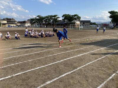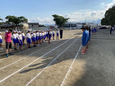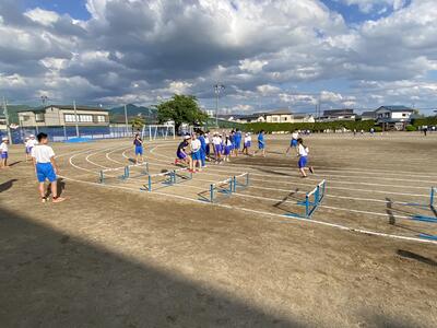 陸上練習が本格的に始まりました。小中連携として、今年度も見中陸上部と合同練習会を行います。今日が第1回目でした。中学生の技術的なことはもちろん、挨拶、行動から学ぶことが多く、子供達は、意欲的にアドバイスを聞きながら練習することができました。見中は県内トップクラスのチームで、最後のリレーのデモンストレーションからスピード感を実感し、明日からのリレー練習につながるものでした。