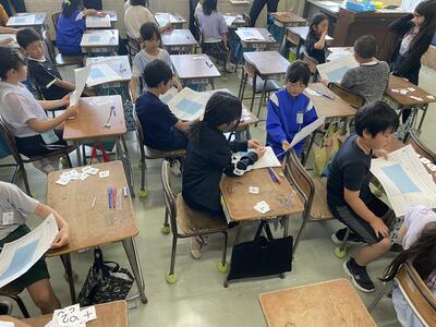津志田小で開催しました。見中学区では、目を輝かせ粘り強く取り組む児童生徒の育成を目指し、ペップトークを生かした集団づくり、授業づくりを推進しています。