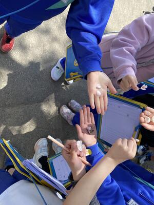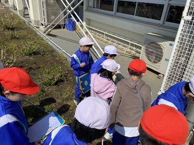 3年生の理科の学習で、春みつけをしました。じっくり観察し、発見したことに喜ぶ姿が輝いていました。