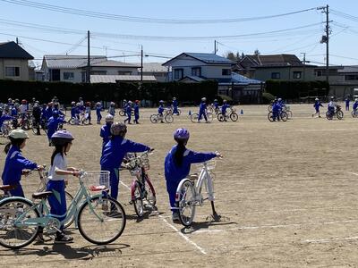 3年生は自転車の乗り方技術に特化したプログラムで行いました。真っ直ぐに走行。決まったコースの走行。安全に停止等基本的な技術練習を行いました。今後の自転車の乗り方については通知しますが、もう少し練習が必要なようです。