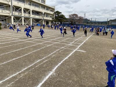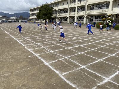 8秒間で何メートル走れるか挑戦する走運動です。自分の力に合わせてスタート地点を決めます。本校では定番教材です。子供達は、何度も挑戦しました。