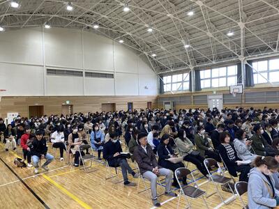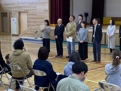 新しい体育館にたくさんの保護者の方に集まっていただき、今年度の学校の経営方針について説明しました。資料については、ホームページに添付します。PTA総会の協議事項について、承認されました。ご理解ご協力よろしくお願いします。なお、今回の総会をもって2名のPTA役員の方が退任することになりました。今まで本当にありがとうございました。そして、新役員の方々、よろしくお願いします。