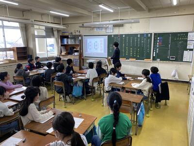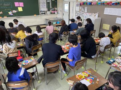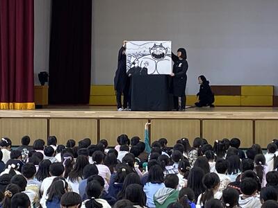 学級懇談会をやっている時間、おはなしおなべさんによるお話し会を開催していただき、全校で体育館に集まりたした。迫力あるお話に、子供達は食い入るように見ていました。