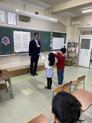 体育館が使えないため、放送での挨拶。その後、各クラスをまわり、修了証書をわたしました。どのクラスも落ち着いた態度で成長を感じました。