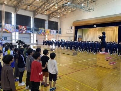 見前南中学校の体育館に入った瞬間に、とても引き締まって且つ心地よい雰囲気を感じました。さすが見南中生だと思いました。力強い応援。音の深まりを感じる大地讃頌の合唱。4年生以上が参加しましたが、聞き入っていました。4年生が連音にむけて取り組んでいる合唱『この星に生まれて』も、透明感のある歌声で音の重なりがきれいでした。最後に全体合唱Smile Againは、低音と高音が重なり体育館中に素敵なハーモニーが響きました。とても素敵な時間でした。