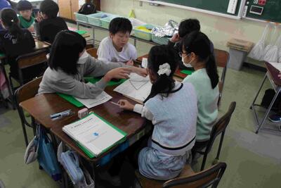 「わたしたちにできる防災・減災~防災フェスタを開こう~」をテーマにふるさと学習(総合的な学習)の研究授業を行いました。水害を措定し、避難するための「防災リュック」の中身を考えました。根拠をあげながら入れるものを考えました。自然災害の怖さは分かっていても、「自分にはふりかからないだろう」と思いがちです。実際、家庭で防災リュックを用意していたところは数件でした。この学習を通して、家庭でもいざという時の避難の仕方や備えについて話し合い、できる備えができるようにしていきたいです。