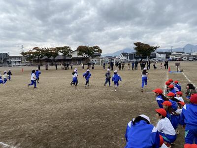 6時間目に6年2組と4年2組のスポーツ交流として、ティーボール対決をしました。全力プレーに好プレー。笑顔が校庭中に広がりました。スポーツの力を感じました。
